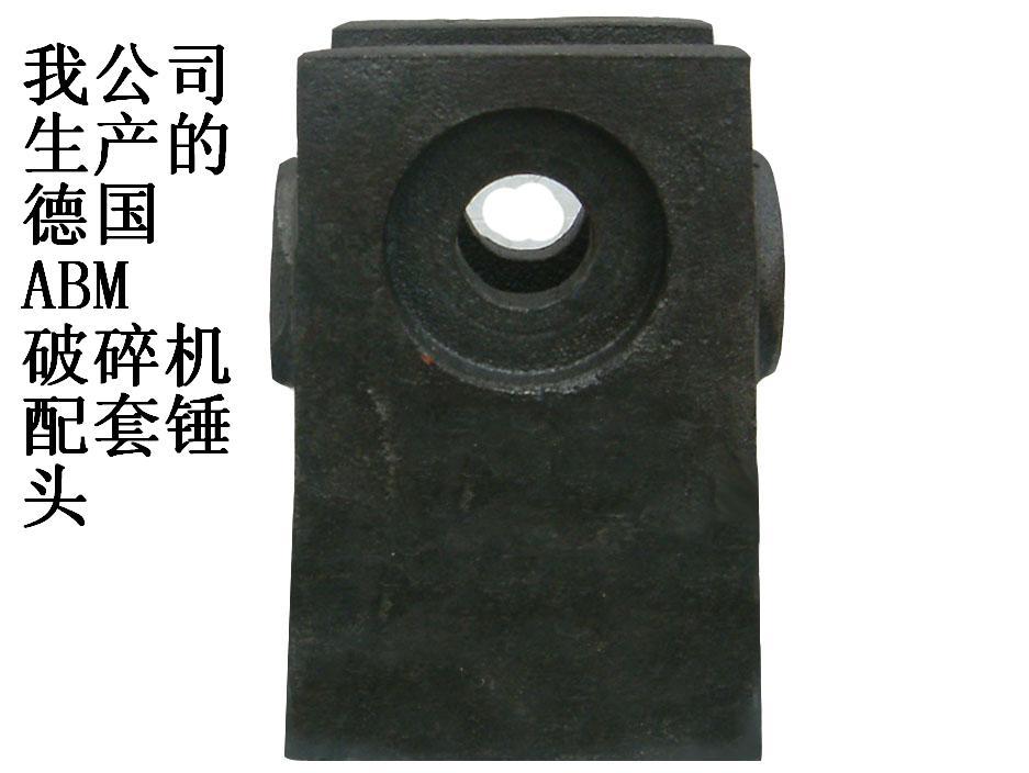 公司采用双金属液液复合技术生产的德国ABM破碎机锤头,复合技术是针对不同的材料、不同的服役条件下进行的各种合金元素的组合,通过炉前的特殊的净化处理、不同材质液体的界面处理,从而提高了锤头的使用寿命和使用硬度。其中锤头工作(耐磨)部分含Cr、Ni、Mo、W及HG牌特殊匀制剂,硬度达到HRC62以上、冲击韧性113J。锤头的抗磨部分硬度达到HRC63-66(一般为HRC 56-61),设备连接处为高强韧结构钢。